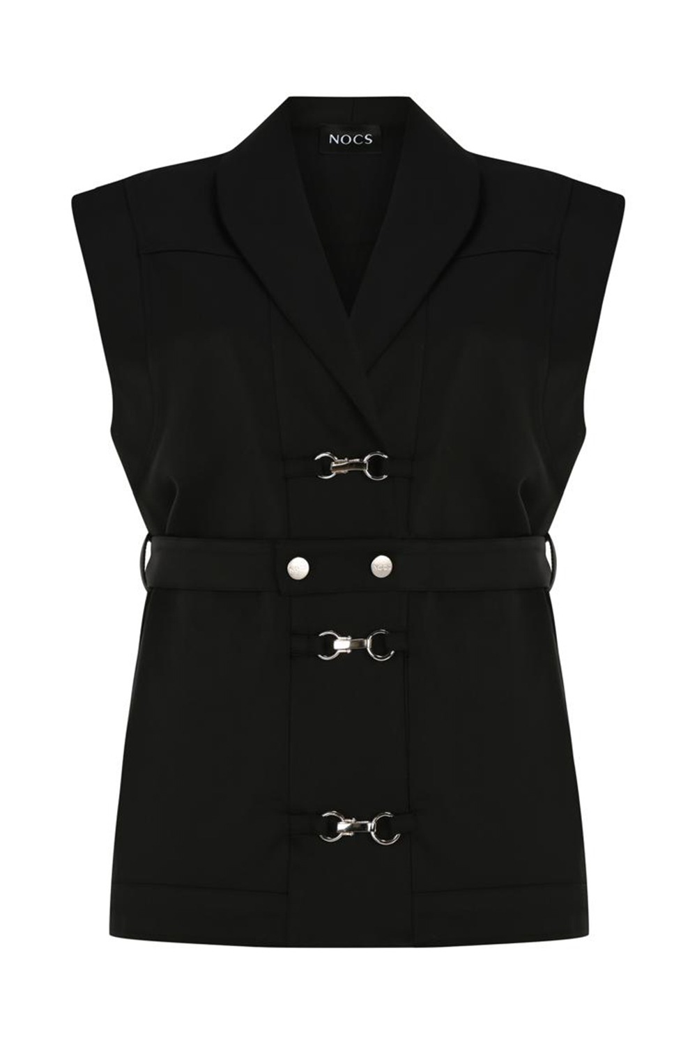 Açıklama : Metal toka detaylı kemerli oversize yelek