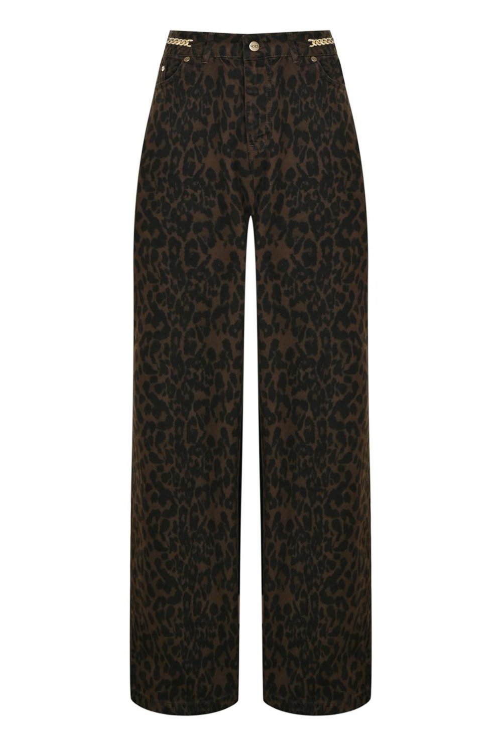 Açıklama: Beli gold zincir detaylı rahat kalıp leopar desenli pantolon