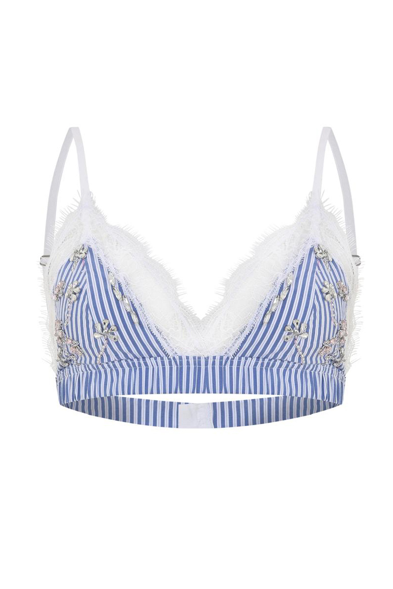 Açıklama : Bol kesim gömlek ve dantel detaylı taş işlemeli arkadan ayarlı crop top