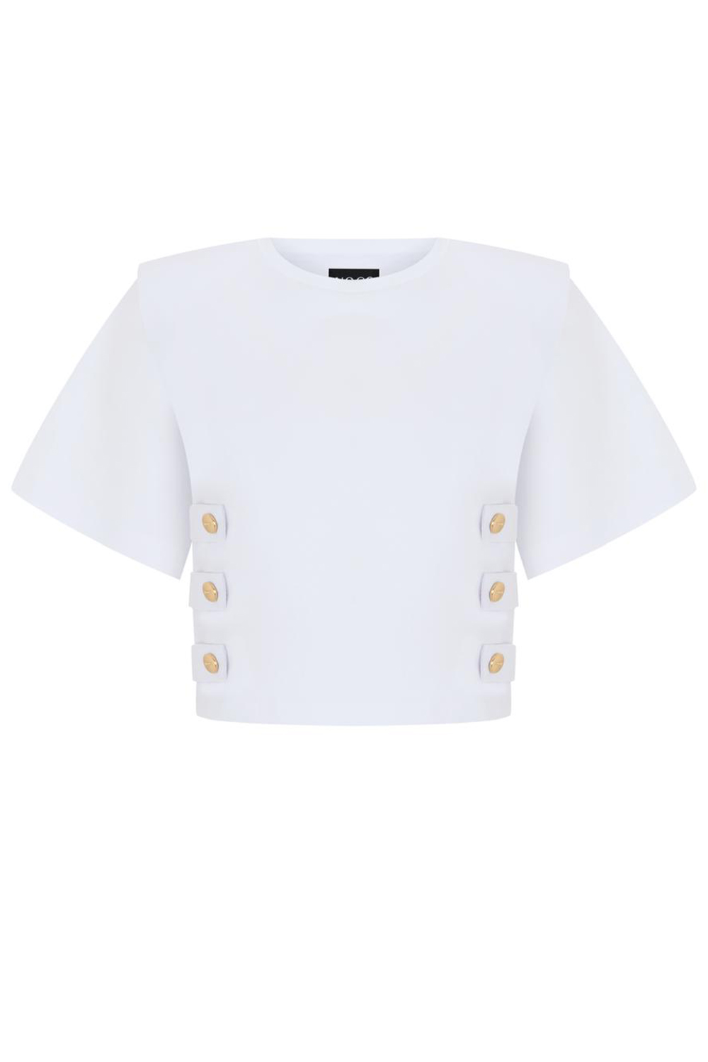 Açıklama: Katlamalı vatkalı kol yanları gold düğme detaylı hafif bol kesim tshirt