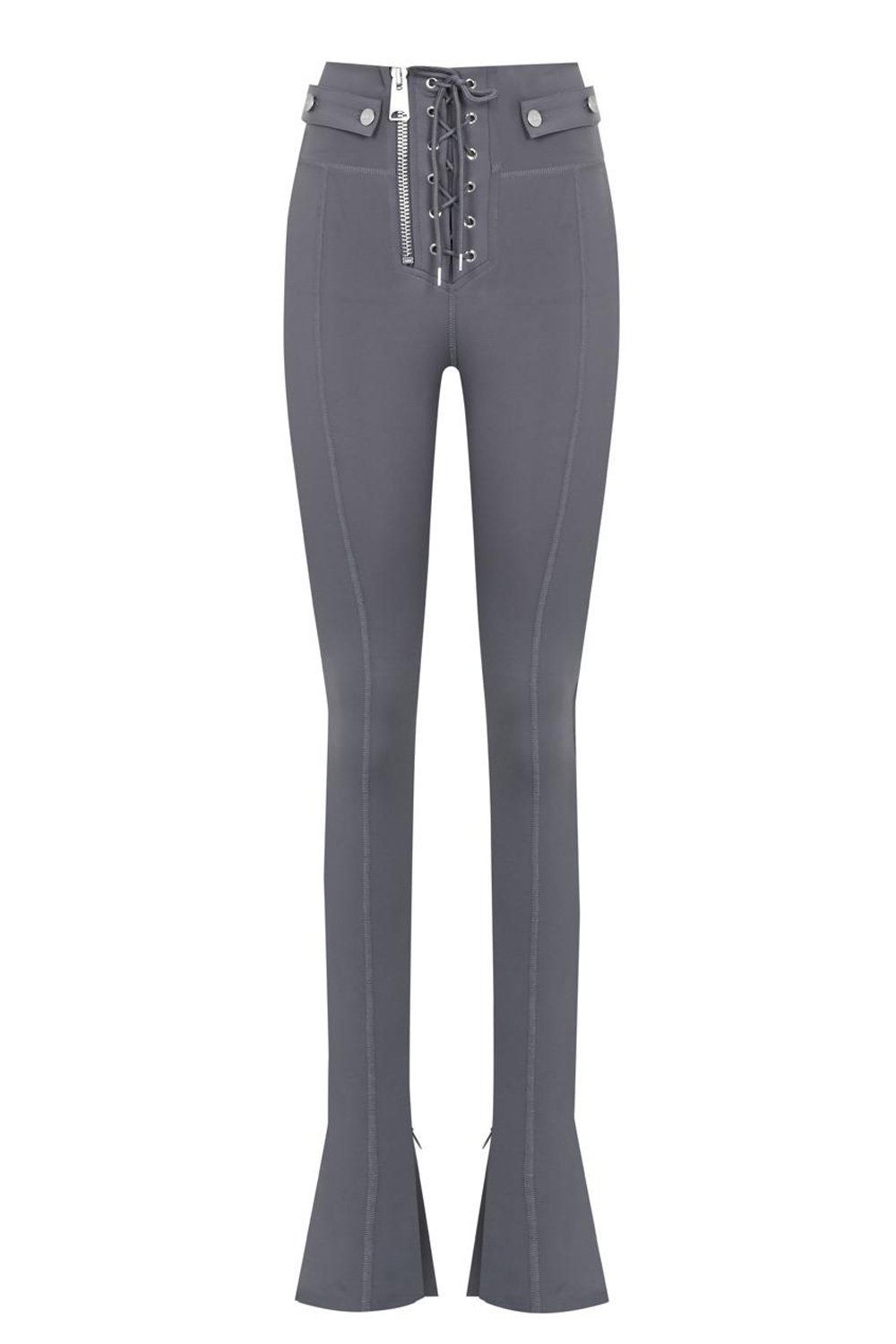 Açıklama: Önden bağcıklı fermuarlı, arka bağcık detaylı, paçası gizli fermuar yırtmaçlı flare paça licralı tayt.
