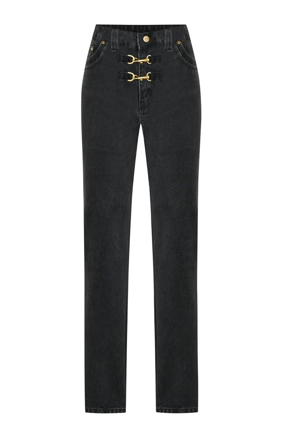 Açıklama: Mat gold açılır metal aksesuarlı straight leg jean